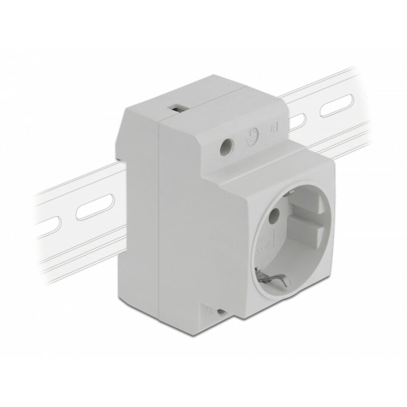 · Presa di alimentazione schuko IPW-ADAP-5D-DIN progettata per il montaggio su una guida DIN da 35 mm · Connettori: 1 x spina CEE 7/3, 3 x morsetti a vite per PE, N, L · Corrente nominale: 16A / 250V~ · Potenza nominale: 4000 W · Protezioni: sovratensione e cortocircuito · Dimensioni (LxPxA): 77 x 64 x 45 mm · Colore: grigio chiaro Questa presa di alimentazione schuko IPW-ADAP-5D-DIN conforme a DIN VDE 0620 Delock è progettata per il montaggio su una guida DIN da 35 mm. La presa può essere utilizzata per aggiungere un collegamento di alimentazione CEE 7/3 in un armadio elettrico o simili. La staffa sul retro consente un facile montaggio su una guida portante da 35 mm. Specifiche Tecniche · Connettori: 1 x spina CEE 7/3, 3 x mosetti a vite per PE, N, L · Robusto alloggiamento in plastica · Corrente nominale: 16A / 250V · Potenza nominale: 4000 W · Adatto per guida DIN da 35 mm · Protezioni: sovratensione e cortocircuito · Dimensioni (LxPxA): ca. 77 x 64 x 45 mm · Colore: grigio chiaro