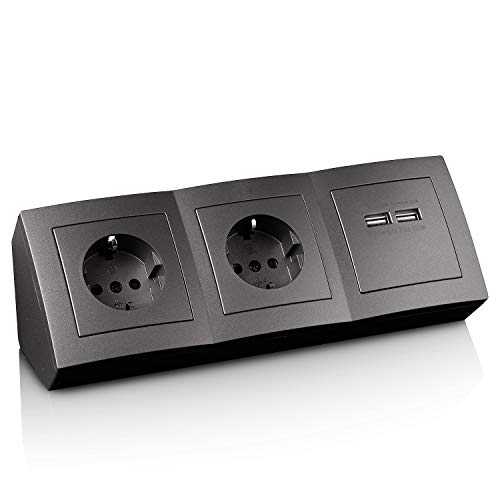Presa ad angolo con montaggio a parete, Schuko, USB, cavo di collegamento da 15 cm e morsetto di bloccaggio per piano di lavoro da cucina, ufficio, officina, 250 V ~ /16 A, morsetto angolare