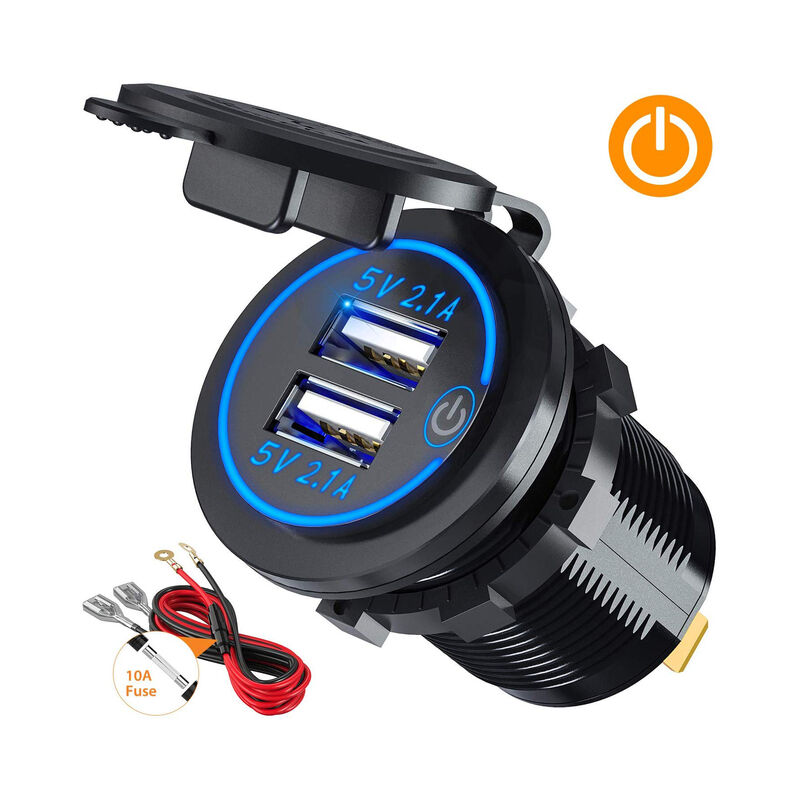 12V USB Presa Impermeabile Presa di Ricarica Porta USB di Ricarica per Auto Marine Golf 3.1A 4.2A QC3.0 con LED Blu voltmetro