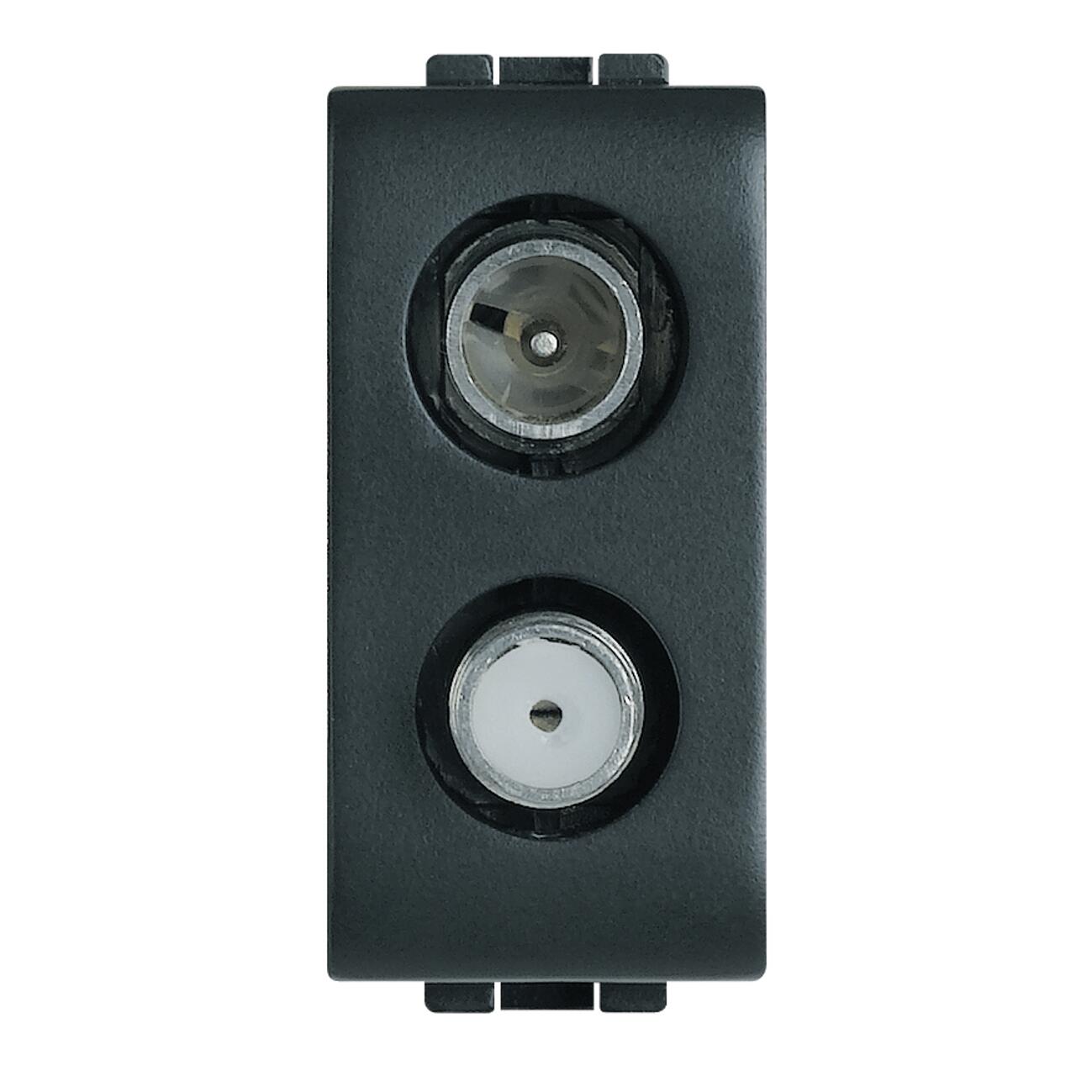 1 modulo, con connettore maschio. Adatto per impianti di antenna monoutenza telealimentati e centralizzati. Adatto per impianti via satellite monoutente e centralizzati con passaggio di corrente e di segnale per la selezione dei canali