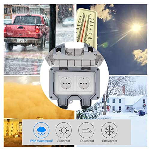 Presa Elettrica Esterno, Presa Da Esterno Impermeabile IP66, Presa Esterna Da Muro, Interruttore Sostituibile, Per Giardino Piscina Bagno Garage,16A Grigio
