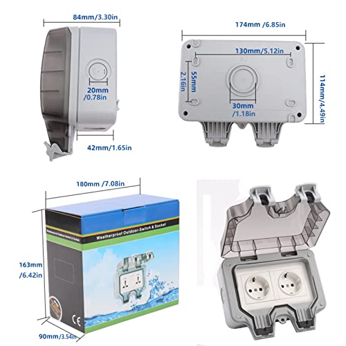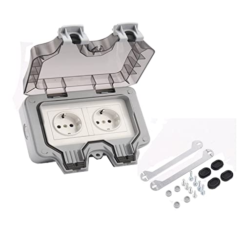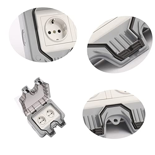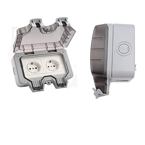 Presa Esterno Impermeabile IP66 con Interruttore, Prese Elettriche a Muro Presa Esterna, Presa Elettrica Esterno per Cucina, Bagno, Garage, Piscina e Giardino(Double)