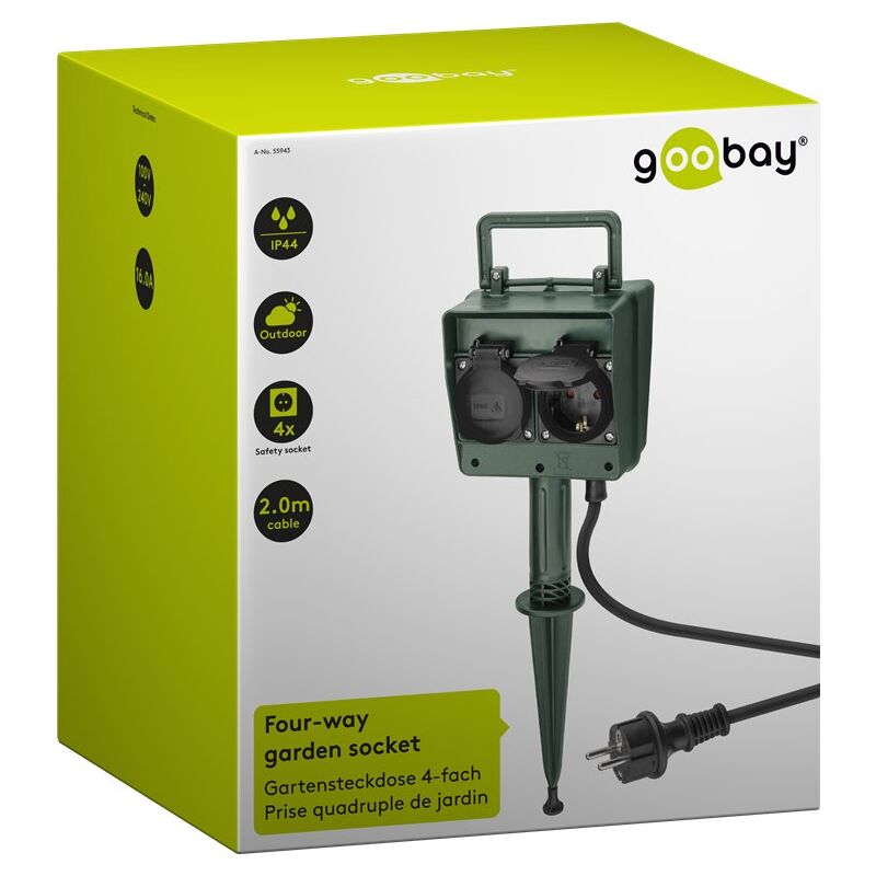Gartensteckdosen auf einem Pflock/einer Spitze - in den Boden getrieben. Vier AC 230V Steckdosen con Klappen e un cavo da 2 m.