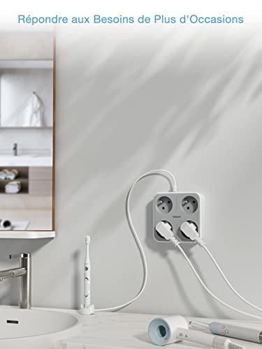 7 in 1 Multipresa elettrica da parete USB: questa Tascetta multipresa USB funziona con tutte le prese francesi messe a terra. La perfetta combinazione di 4 prese francesi e 3 porte USB, la potenza massima è di 4000 W (250 V Max, 16 A) e l'uscita di corrente massima di ogni porta USB è di 2,4 A (3 A Total). Questa presa multipresa a muro consente di soddisfare più esigenze di ricarica in un unico posto.