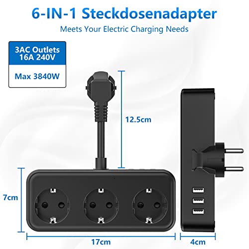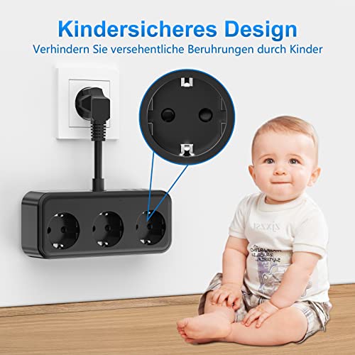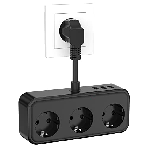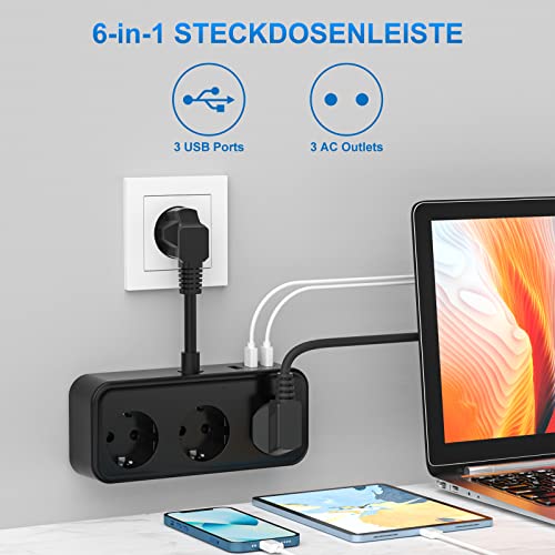 Presa Multipla, Presa Multipla con USB, Presa Multipla a 3 Vie con 3 USB (5 V/3,1 A), Presa Multipla, Adattatore Presa 6 in 1 per Camera da Letto, Viaggi e Ufficio - Nero