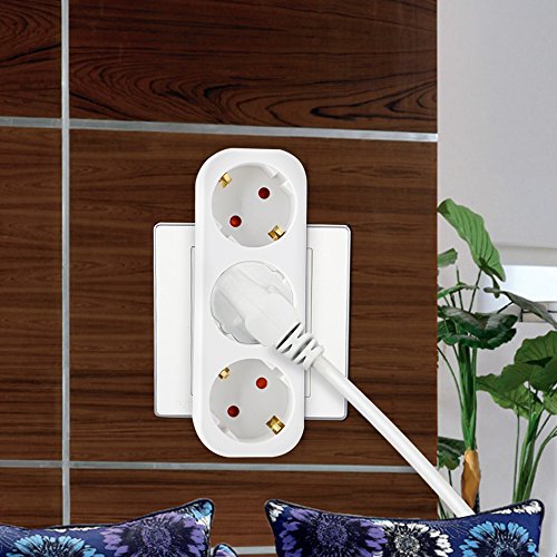 3 presa multipla Adattatore, spina schuko 3 presa con contatto di terra Adattatore Spina, Nakeey spina 3 prese spina tripla, Multi, spina multipla, Presa multipla, Bianco