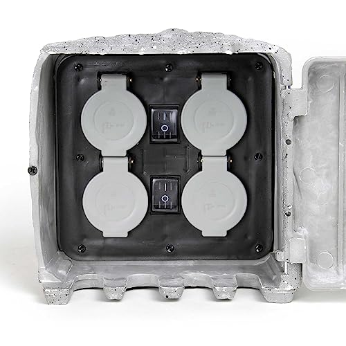 Presa Multipla Effetto Pietra per Esterno 4 attacchi Protezione IP44 2 interruttori