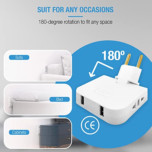 [ Testa Girevole 180 Gradi ]: Questa presa piatta la potrai utilizzare nel modo che ti risulta più comodo per non coprire altre presa multipla vicine. Questa presa usb ha due posizioni con percorso di 180 gradi.