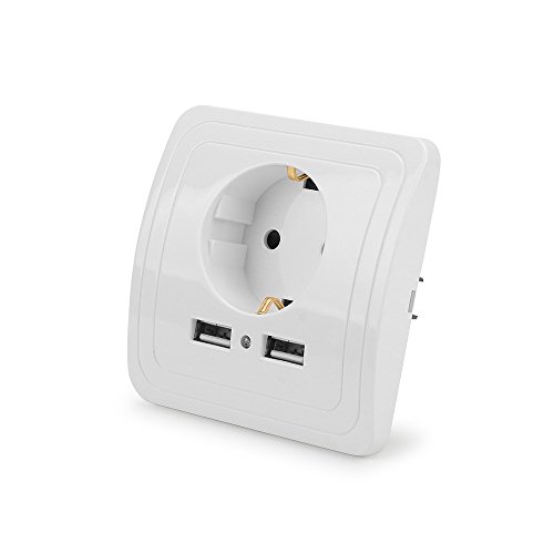 Presa a muro, presa di corrente con 2 porte USB (corrente 2A) e 1 presa UE, chip IC integrato, ingresso AC max 250 V 16 A, materiale PC ignifugo