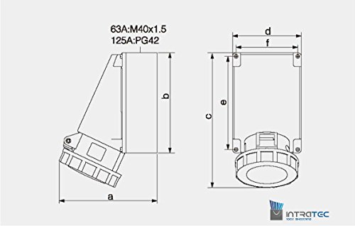 CEE Presa a parete a corrente forte Intratec 63A 400V 6h IP67 (resistente agli spruzzi d'acqua) a 5 poli (3P+N+T) Spina industriale e multifase robusta qualità industriale