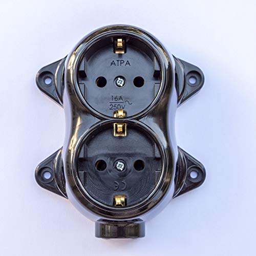 Presa RETRO FEST Retro Retro - 2 x 16A-250V montaggio a parete in ottone spesso nero effetto bachelite antico su legno ottone fisso migliore opzione
