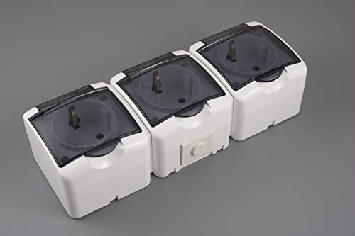 Presa Schuko a 3 ingressi, per ambienti umidi, IP 54