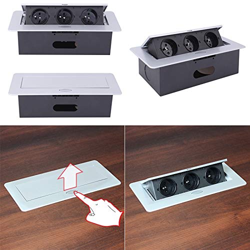 Presa a scomparsa per 3 spine Schuko Presa da incasso con cavo da 1,5 m per cucina, ufficio. Design salvaspazio, 230 V AC, IP20, nero, max 3600 Watt.