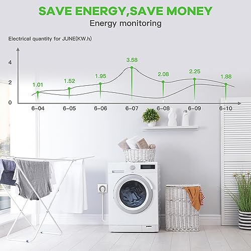 【Misurazione del consumo di energia】La funzione di registrazione della presa intelligente è in grado di visualizzare il consumo di energia elettrica in tempo reale, in modo da poter conoscere sempre il consumo energetico dei vostri apparecchi e aiutarvi a risparmiare più energia.