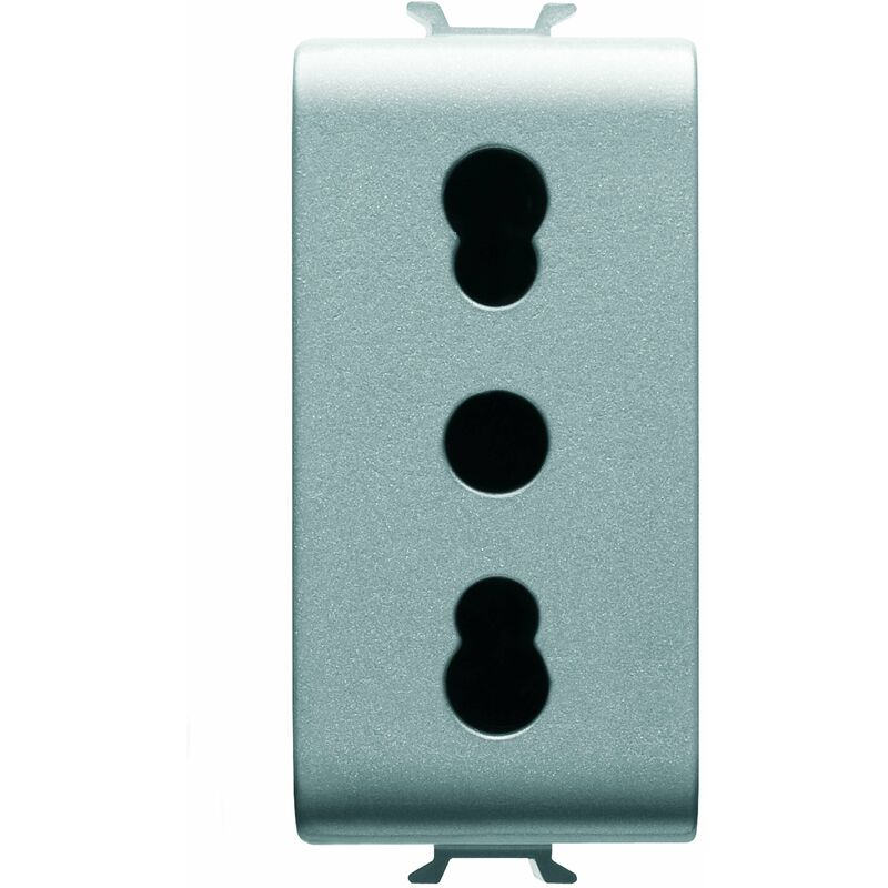 Presa standard italiano 250V AC 2P+T 16A bivalente 1 modulo titanio serie Chorusmart. I dispositivi modulari ChoruSmart offrono la possibilità di creare infinite combinazioni frutti-placche, grazie ad una gamma completa in grado di soddisfare ogni esigenza estetica, funzionale ed installativa. Presa standard italiano 250V AC 2P+T 16A bivalente 1 modulo titanio serie Chorusmart. I dispositivi modulari ChoruSmart offrono la possibilità di creare infinite combinazioni frutti-placche, grazie ad una gamma completa in grado di soddisfare ogni esigenza estetica, funzionale ed installativa. Colori e finiture: Colori e finiture: nero satinato, elegante e di classe. Funzioni illimitate in spazi ridotti: la serie ChoruSmart si compone di tasti da 1/2, 1, 2 e 3 moduli basculanti, per ottimizzare gli spazi secondo le necessità, e di tasti assiali in versione EVO o SMART, per soddisfare anche le più moderne necessità. Aggancio frontale: l'aggancio frontale rende molto più semplici e rapide le