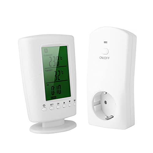 Presa per Termostato Wireless, Termostato Programmabile Wireless 433,92 Mhz e Presa Kit di Controllo della Temperatura per il Controllo Gratuito Dell'ufficio Domestico per il Controllo(EU)