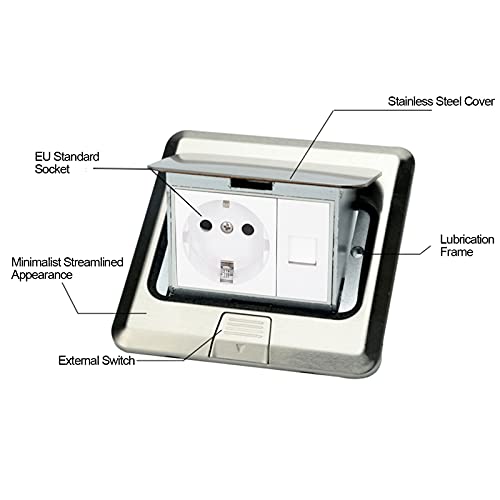Presa di Terra da Incasso in Acciaio Inossidabile Impermeabile con Spina Europea Presa da Pavimento a 2 Vie CA 250 V