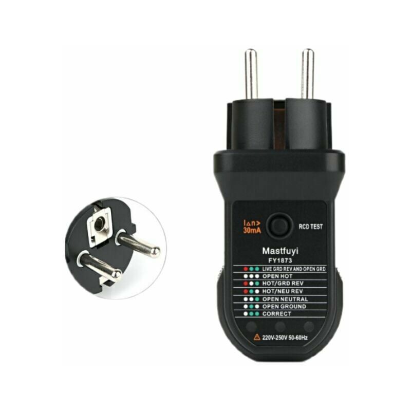 Devi ancora controllare l'impianto elettrico di casa e controllare la polarità della spina di connessione? Hai bisogno di testare il grilletto delle perdite? Prova il nostro tester per prese Meterk. È un tester per prese professionale che rileva rapidamente se la connessione cablata della presa è corretta o meno. Con la funzione di test RCD, è più conveniente e sicuro. Caratteristiche: 1. Tester per prese elettriche - Tester per prese avanzato per rilevare rapidamente se la presa il collegamento del cavo è corretto o meno. 2.Design del pulsante di test RCD - Presa di alimentazione per cablaggio corretto e funzione di trigger RCD. Può testare il sistema di protezione per garantire la sicurezza elettrica domestica. Perfetto per proteggere la tua sicurezza dal rischio di scosse elettriche. 3.Facile da usare: rileva se il filo neutro, sotto tensione e di terra è collegato correttamente e indica quale filo è mancante con modelli di luce chiari. 4.Luce LED luminosa e 3 indicatori di test