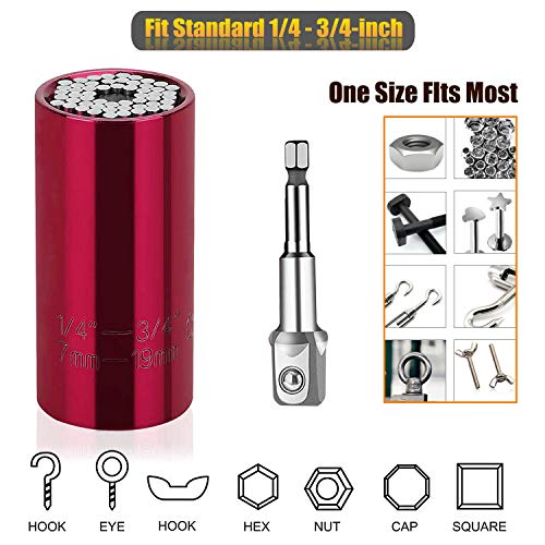 Presa universale, 2 confezioni da 1/4 a 3/4 "Chiave a cricchetto Power Drill Adapter Strumenti Regalo per Uomini Lui, Marito, Papà Padre Tuttofare (presa universale rosso)