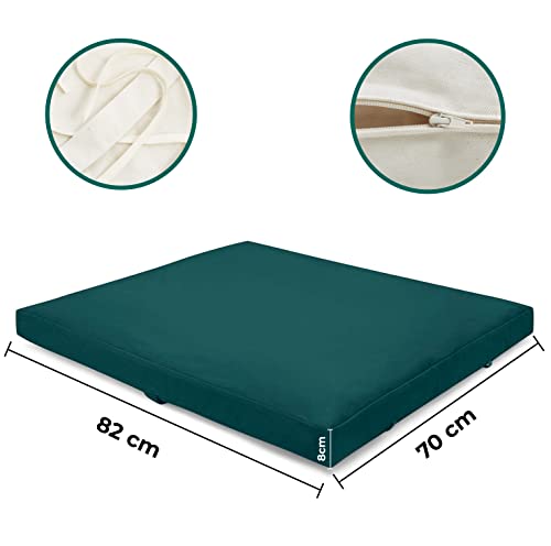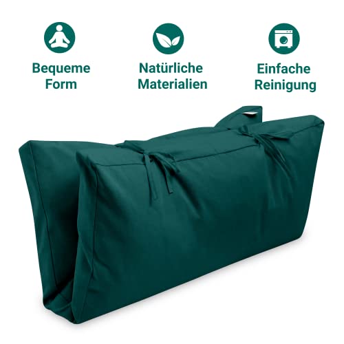 Present Mind Tappeto Meditazione Zabuton (Colore: Verde Smeraldo) - Tappetino da Meditazione Pieghevole (70 x 82 x 6-8 cm) - Prodotto nell'UE - Fodera Lavabile - Meditazione Accessori 100% Naturali