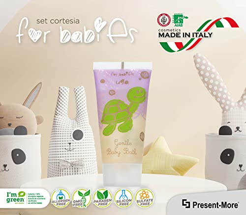 ✅ FRAGRANZA SENZA ALLERGENI: Il bagnoschiuma monodose For Babies è caratterizzato da note aromatiche di pesche, albicocche e lampone con toni freschi e delicati. Le fragranze della linea cortesia Present-More sono prive di allergeni secondo il regolamento CE n 1223/2009
