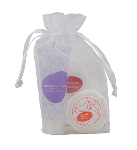 ✅ RICEVERAI: Set composto da 1 tubetto di shampoo doccia 30ml, 1 saponetta 15gr, 1 cuffia doccia in bustina