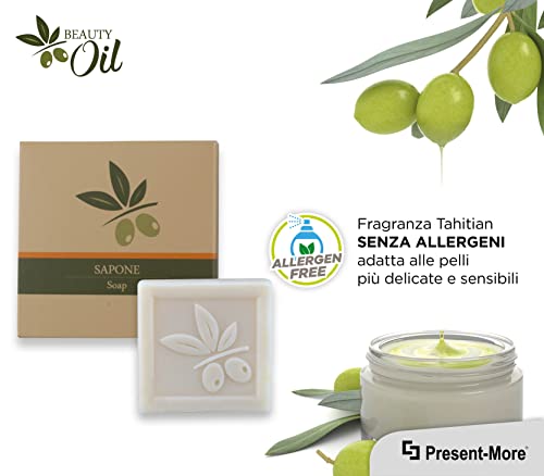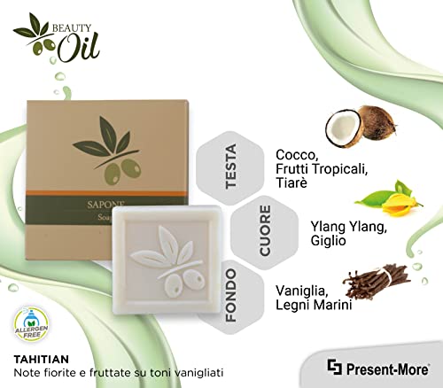 Present-More Sapone 25gr Beauty Oil - Mini saponette 250 pezzi per Alberghi, B&B e Hotel | Mini saponette prive di allergeni con fragranza Tahitian