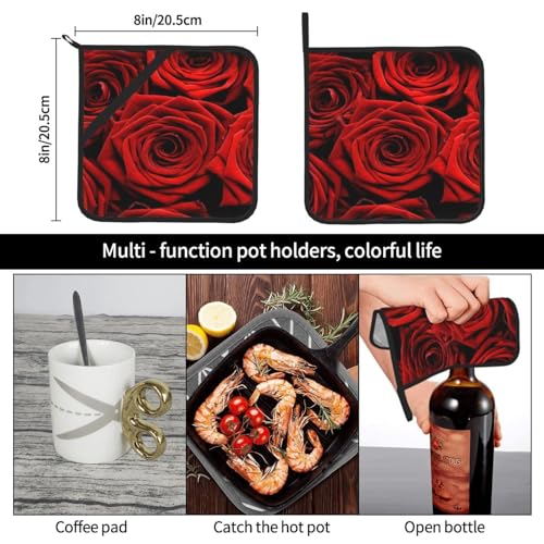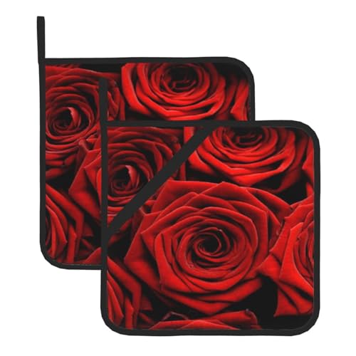 Set di 2 presine resistenti al calore con tasca per cottura in cucina, forno, forno a microonde (20,5 x 20,5 cm), rose rosse