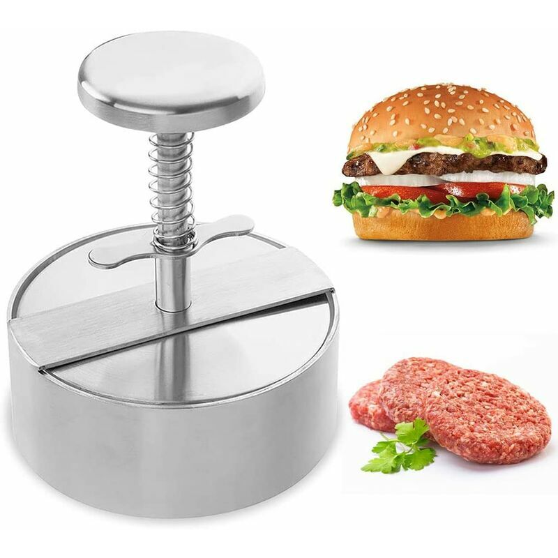 Hamburger + manico La macchina per hamburger Il tortino di hamburger ha un rivestimento antiaderente su tutta la superficie in modo che gli spazi vuoti si stacchino da soli. La carne macinata è facile e veloce da pressare nella giusta forma e preparare in padella o alla griglia. L'hamburger ha una maniglia a superficie rotonda ergonomica, staccabile e antiscivolo, con un design unico della scanalatura, che è migliore per le dita.La forza della molla viene utilizzata per ridurre la pressione della mano, che può aiutarti a rendere più facile il polpettone. La pressa per hamburger è lavabile in lavastoviglie. Gli hamburger in acciaio inossidabile possono essere utilizzati per cucinare hamburger, polpette, barbecue e una