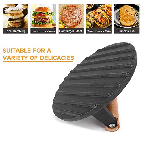 Pressa per hamburger, pressa per hamburger da 17,8 cm, pressa per hamburger, pressa per hamburger rotonda per piastra, pressa per griglia in ghisa con manico in legno al tatto, pressa per hamburger,