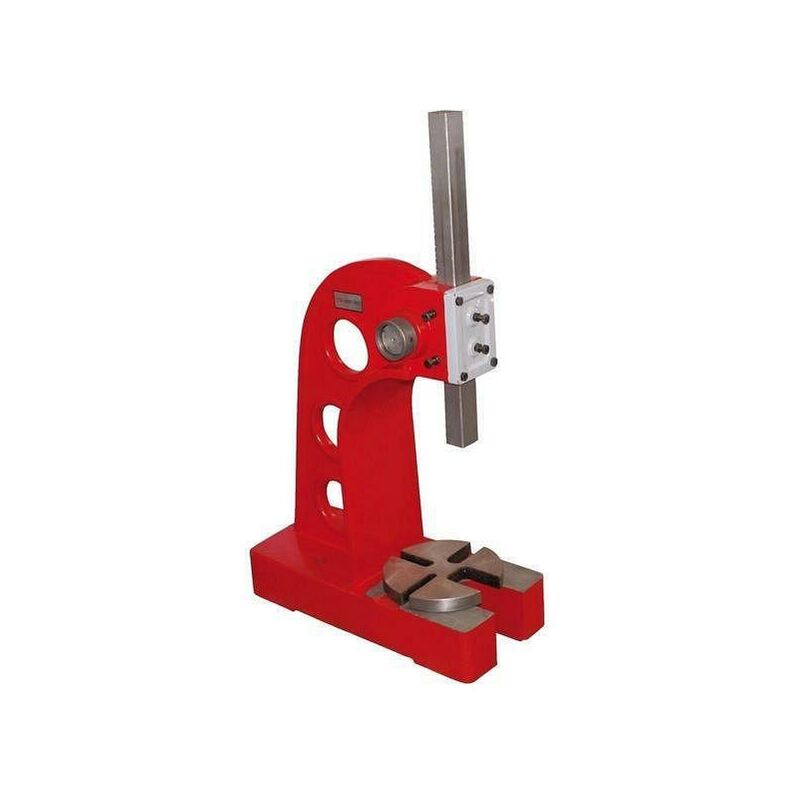 Il telaio in ghisa grigia di alta qualità consente forze di pressatura molto elevate Adatto per il montaggio di cuscinetti, boccole e per altri lavori di giunzione Trasmissione della forza della leva tramite grande ruota dentata e cograil Piastra base universale Dati tecnici: Forza di pressione totale 5000 kg Peso netto/ lordo 150x170 Packaging 950x370x760 Codice EAN 9120039904375