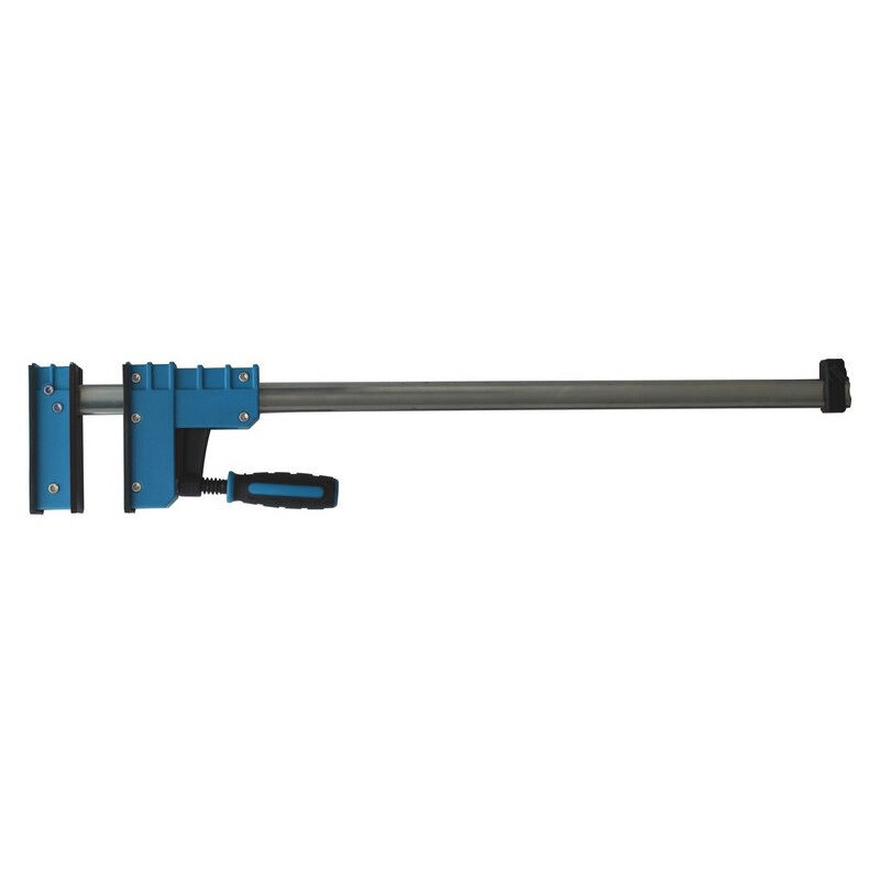Leman - Pressa parallela con manico sporgente Lunghezza dell'albero 1500mm - Premere con grandi ganasce che esercitano una pressione parallela e perpendicolare su tutta la loro superficie - Ideale per l'assemblaggio di scatole o cornici - Asta di sezione 30 x 8 mm in acciaio CX45, dentellata - Forza di serraggio massima 5000N - Impugnatura ergonomica e antiscivolo - Protezione in plastica morbida per proteggere la superficie delle parti da bloccare - Piccolo arresto posizionabile per l'uso della pressa in posizione di riposo Larghezza della ganascia: 90 mm Dimensione dell'albero: 30 x 8 mm Lunghezza dell'albero: 1500 mm