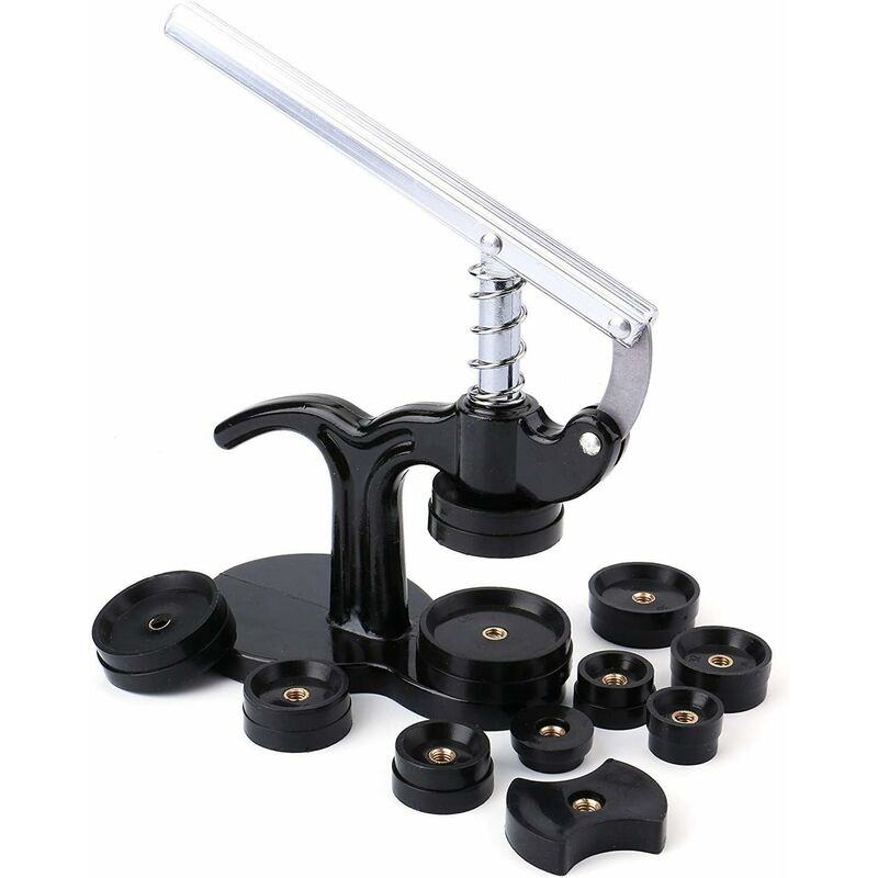 Strumento professionale - Questo strumento di riparazione dell'orologio è progettato per aprire le coperture degli orologi per sostituire le batterie. Perfetto per professionisti e amanti degli orologi. Funziona bene - Questo strumento di chiusura della copertura dell'orologio è molto versatile per chiudere le coperture per la sostituzione della batteria dell'orologio. È un buon prodotto che funziona perfettamente in modo molto semplice ed efficace. Muore di varie dimensioni - Questo kit di strumenti per orologiai viene fornito con 12 stampi da 18 mm a 50 mm. È molto completo. Vari tipi di parti sono adatti per orologi di varie dimensioni e si adattano bene. Pratico e indispensabile: la pressa per la copertura dell'orologio ha una vasta gamma di dimensioni di orologi di matrici di diverse dimensioni. È molto utile e basilare facilitare la chiusura degli orologi senza difficoltà. Materiale affidabile - Questo attrezzo per la stampa di orologi è una produzione di alta qualità. Gli