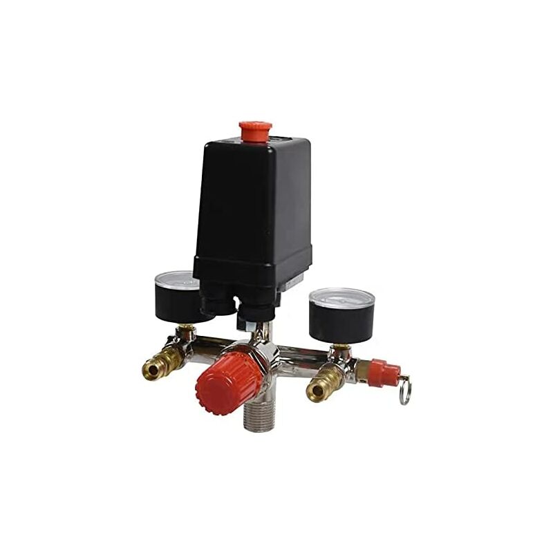 Materiale: Metallo, plastica. Il prodotto da costruzione in plastica e metallo è robusto e durevole. Facile da installare e smontare. Utilizzato principalmente per regolare la pressione di avvio e di chiusura del compressore d'aria. Intervallo di pressione: 90-120 psi Pressione inferiore a 90 PSI, accendere il compressore. Pressione superiore a 120 PSI, spegnere il compressore. 0-180 PSI.