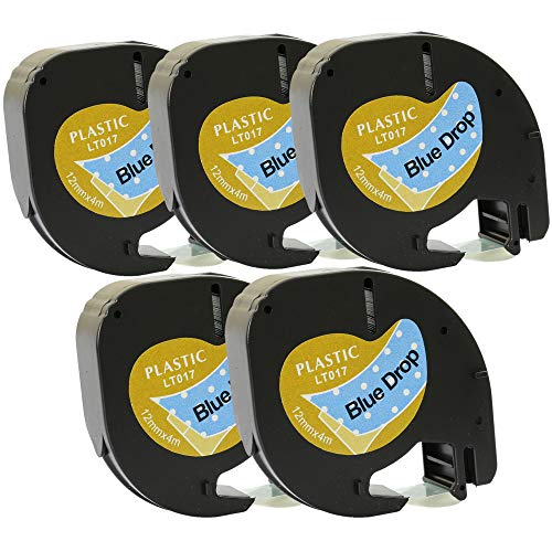 Prestige Cartridge 5 Compatibili Cassettes nero su goccia blu 12mm x 4m Nastri di Plastica per Etichettatrici Dymo LetraTag LT100H LT100T LT110T QX50 XR XM 2000 Plus