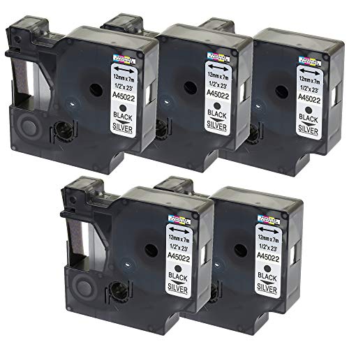 Prestige Cartridge Nastro per Etichette, Sostituisce 45022/S0720620, 12mm x 7m, 5 Pezzi, Blanco su Plata