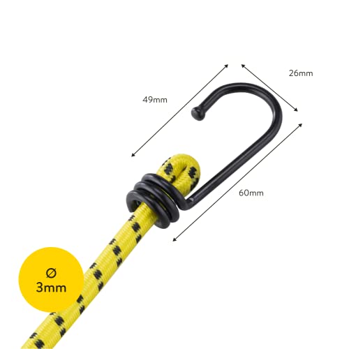 Ganci Rivestiti: Le corde elastiche sono dotate di ganci in acciaio completamente rivestiti. I ganci sono robusti e sicuri da usare per il fissaggio di bagagli o altro.