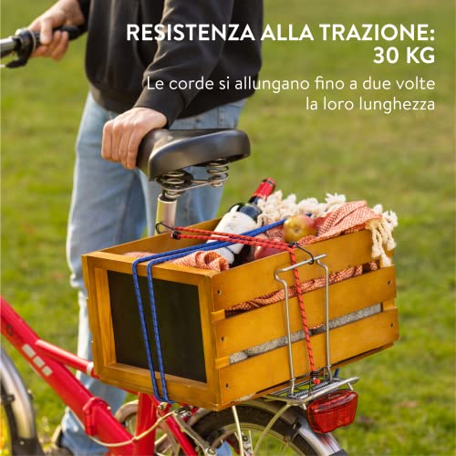 Ottima Qualità: Ogni rivestimento delle corde elastiche è colorato e in tessuto morbido al tatto. Il diametro è di 8 mm, la forza di trazione di 30 kg (295 N) e la lunghezza massima di estensione è il doppio della lunghezza del prodotto