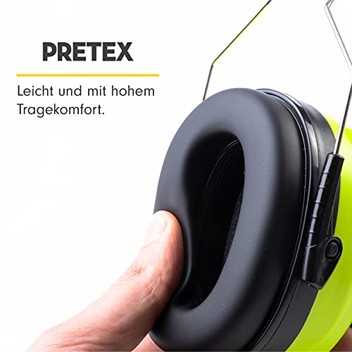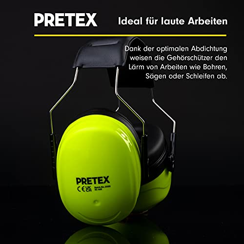 PRETEX Protezione acustica professionale con SNR 31 dB, peso leggero, fascia regolabile all'infinito, certificazione CE, cuffie antirumore per la protezione dell'udito