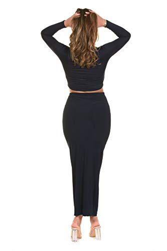Oh! Pretty Donna Maxi Gonna Aderente Elasticizzata a Vita Alta Bodycon Yoga Gonna Lunga a Midaxi Campana Taglia 40-54 (Blue Marino, 40-42)