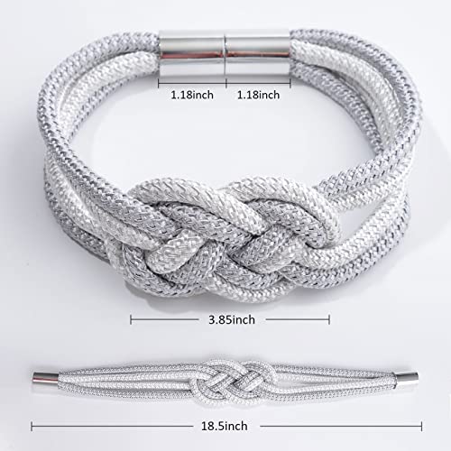 Pretty Jolly Confezione da 2 forti fermatende magnetici, decorativi, intrecciati a mano, con nodo, per casa e ufficio (grigio e bianco)