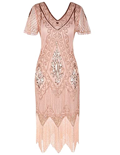 PrettyGuide Donne 1920 Paillettes Deco Pavone Gatsby Abito da Cocktail Flapper