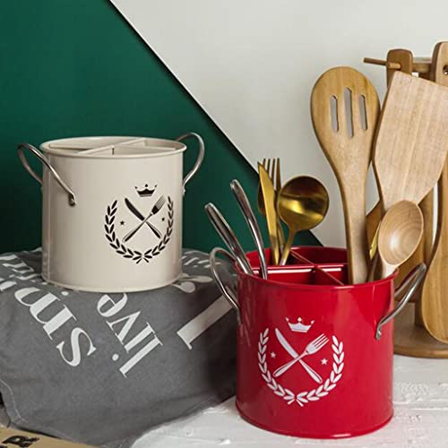P Prettyia Porta-Utensili, con Manici, Scolaposate per Immagazzinaggio con Scomparto - Beige
