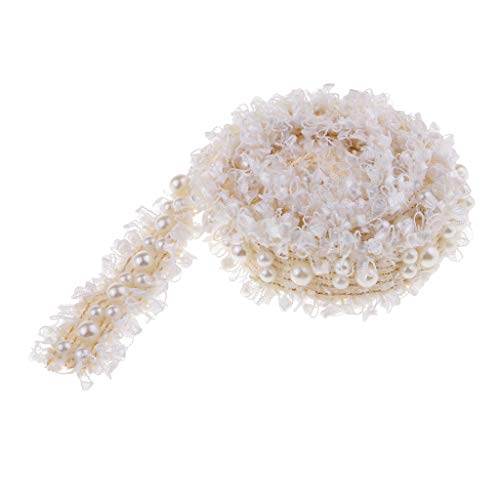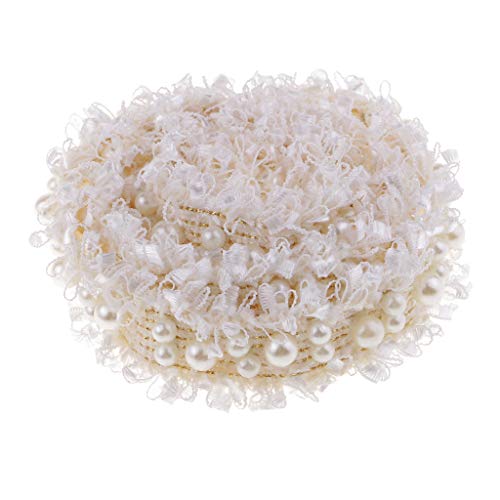 P Prettyia 2 Rotoli Elegante Pizzo Nastro Sfilacciato Bordo Applique da Sposa Avorio con Perline Perle Trim