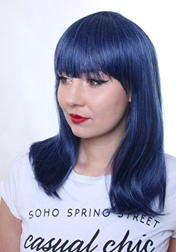 parrucca capelli di media lunghezza ca. 50cm con meches blu bellissima tinta trendy e moderna