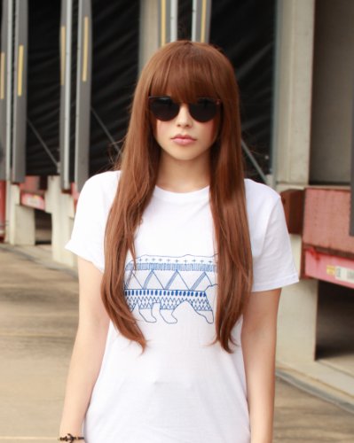 Prettyland C398 - parrucca lunga 70cm capelli lisci setosi frangetta lunga dritta volume lunghezza - marrone