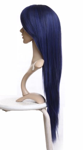 Prettyland C942 Parrucca 80cm Capelli Lunghi Lisci Colore Blu Notte Per Teatro E Halloween