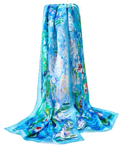 Prettystern Donna 160cm Sciarpa Di Seta Lunga Foulard Stampe D'arte Stola Regalo Idee Monet Blu Le Ninfee P585