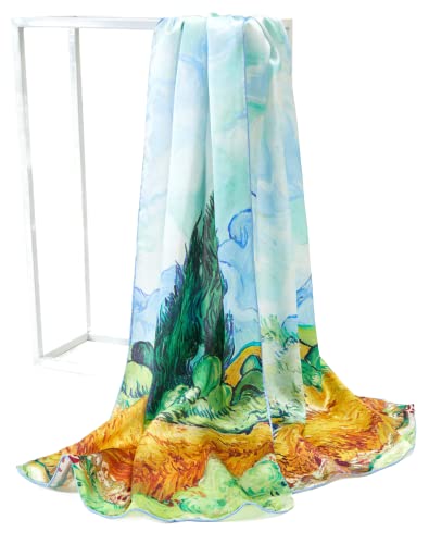 Prettystern Donna 160cm Sciarpa a spalla Di Seta Lunga Foulard Stampe D'arte Regalo Idee Van Gogh Campo Grano Con Cipresso P943
