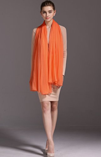 Prettystern Donna Uomo XXL Oversize Pura Seta Foulard Scialle Sciarpa Elegante Sarong Pareo Cerimonia Festa Stola Estiva 180/110 cm A13 Arancione